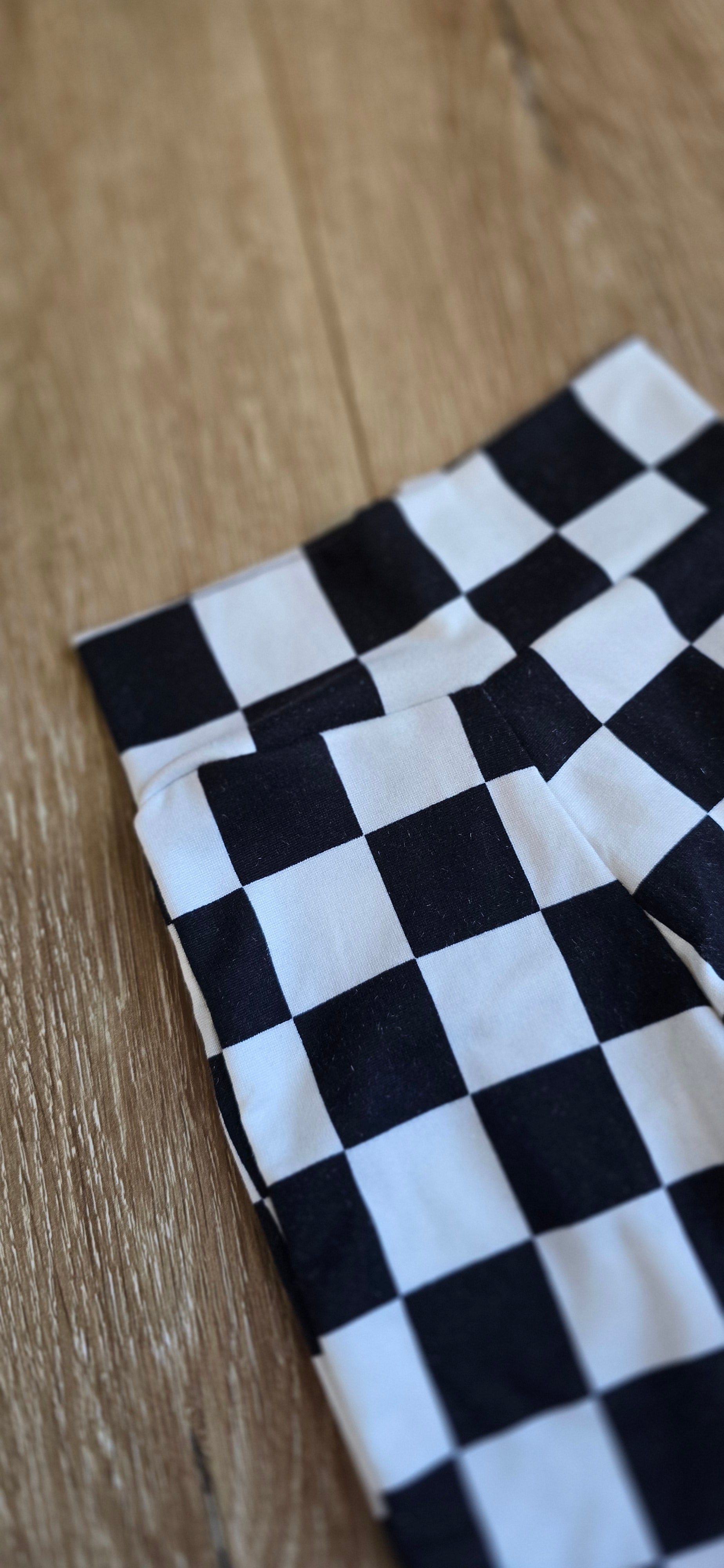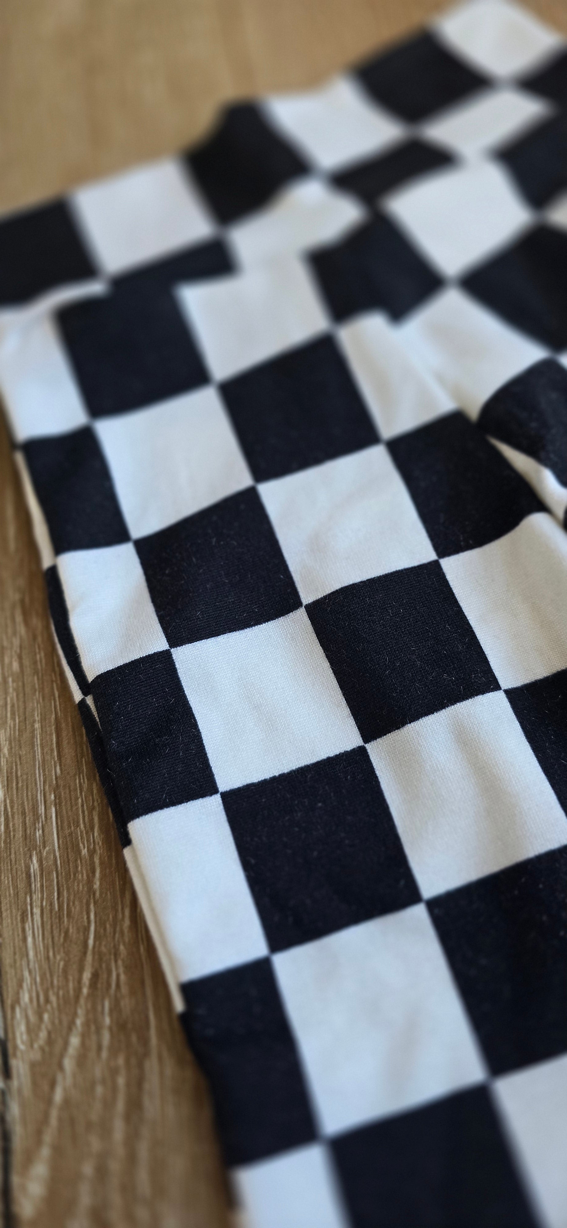 Coolest checkered flare pants made to order. Stretchy, wide waistband. Polyester.
