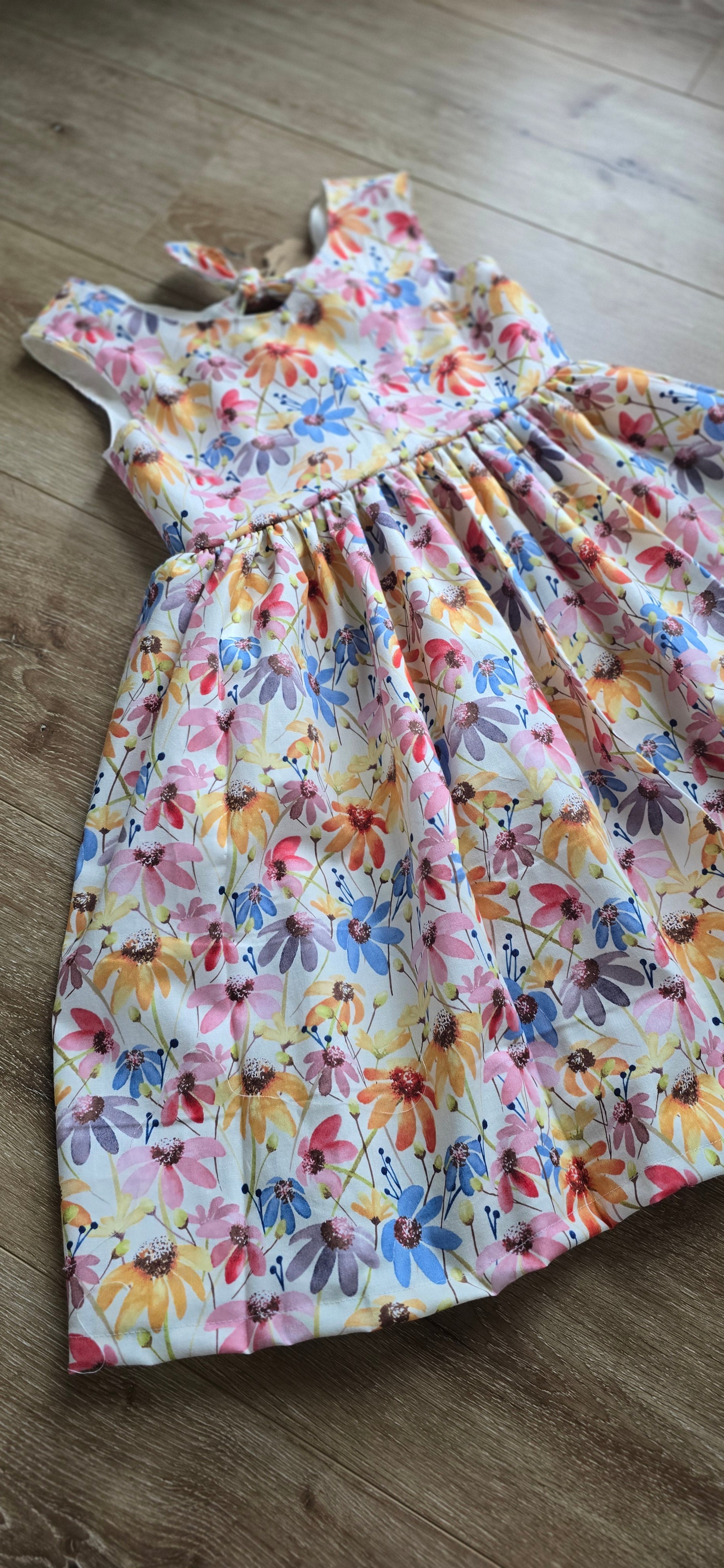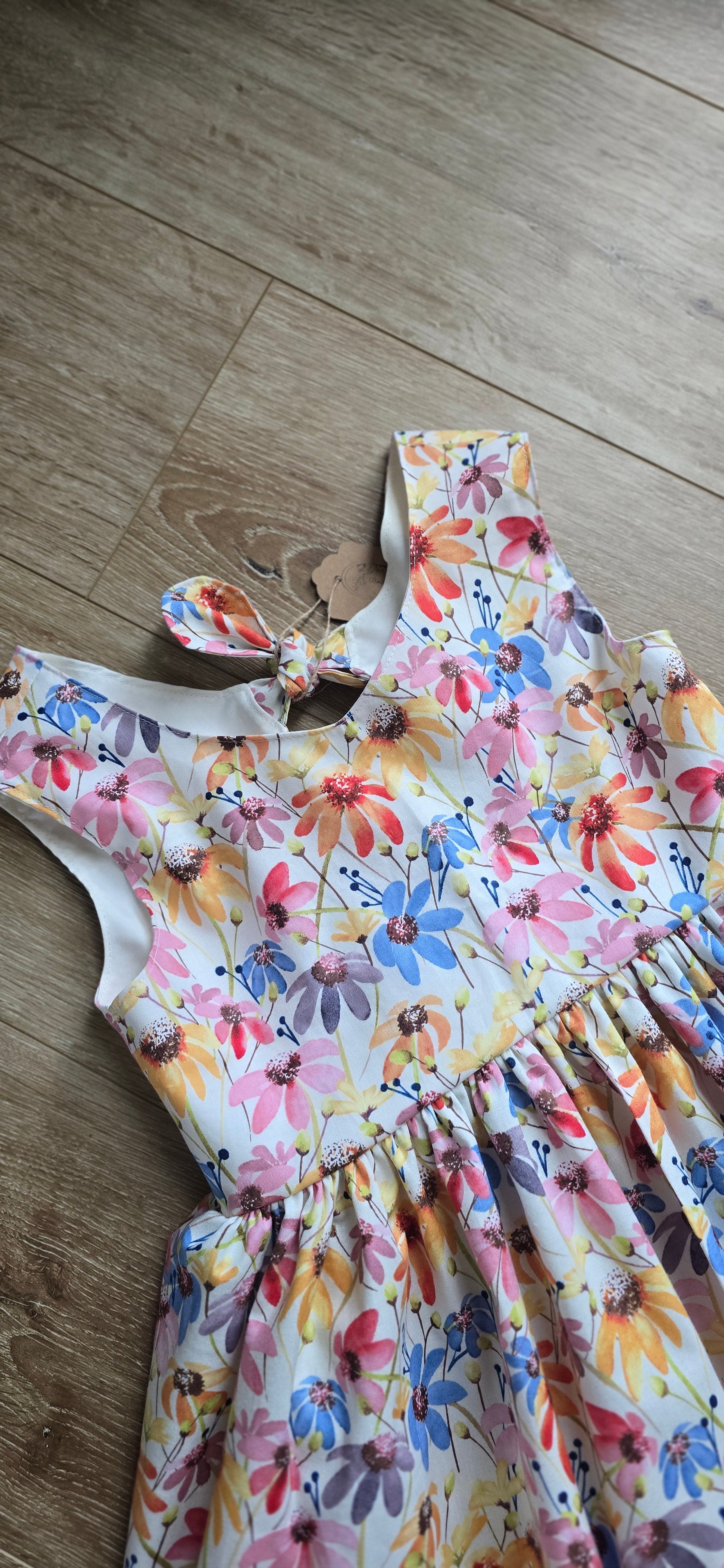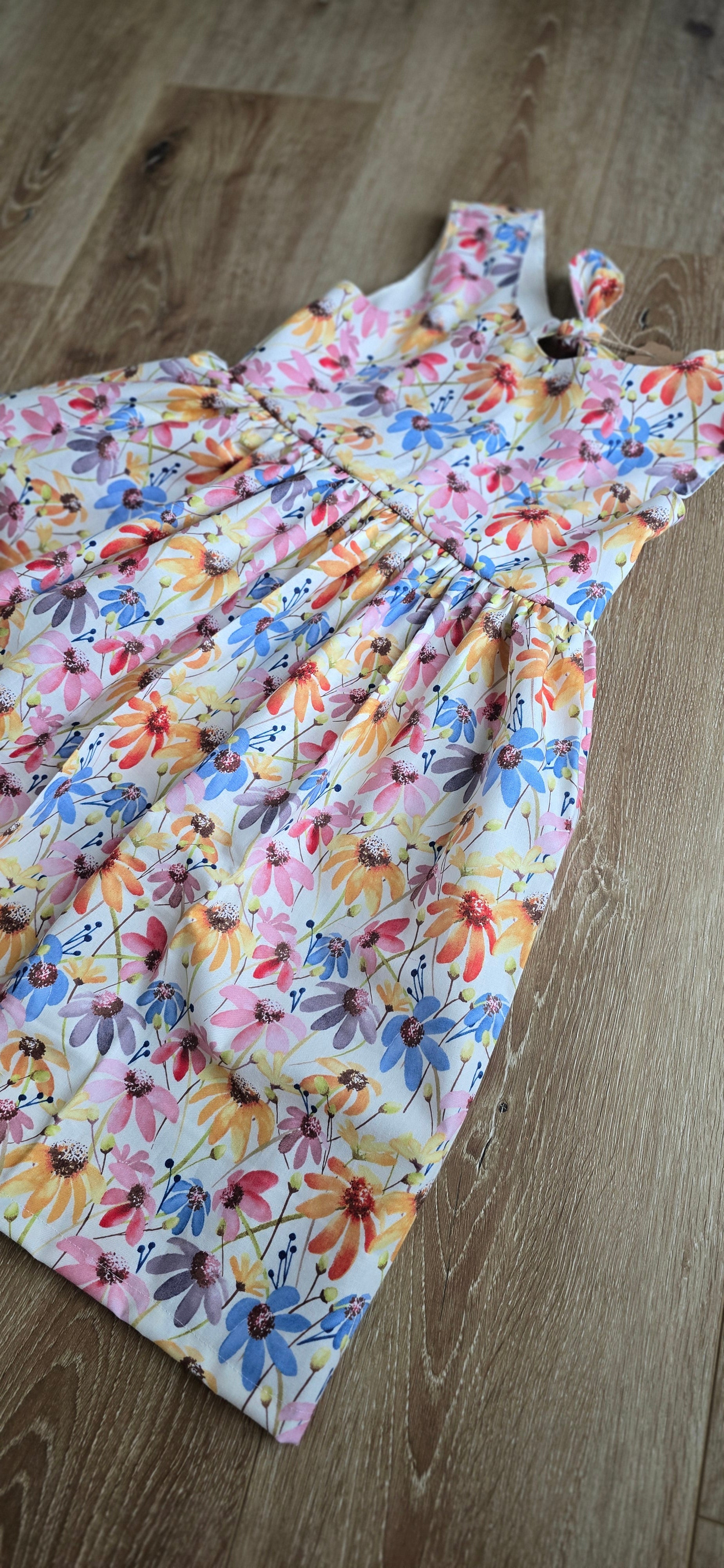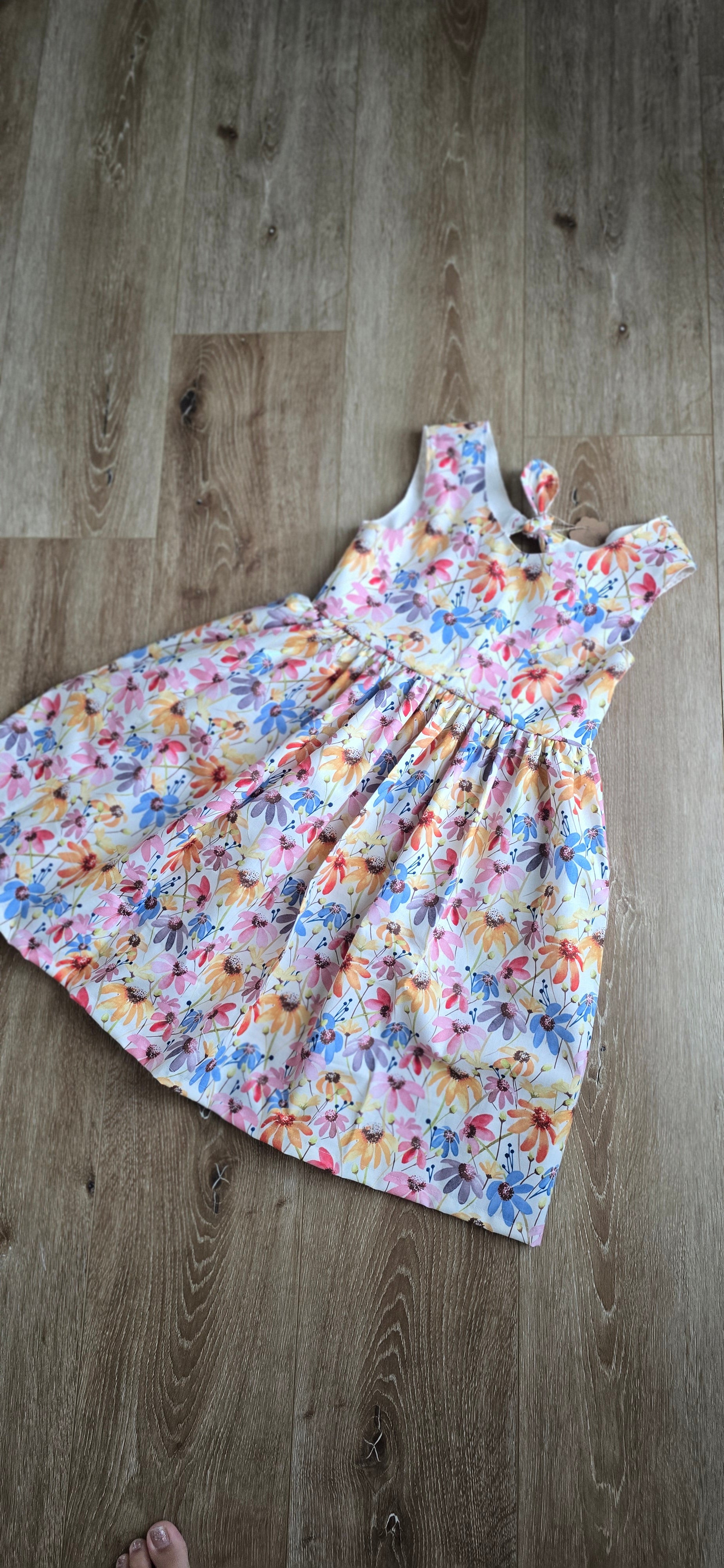 100% cotton. Sleeveless. Stretchy open back. Back ties. Knee-long. Perfect for fall festivities.